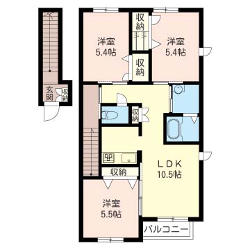 洋室 5.4帖 洋室 5.4帖 洋室 5.5帖 |