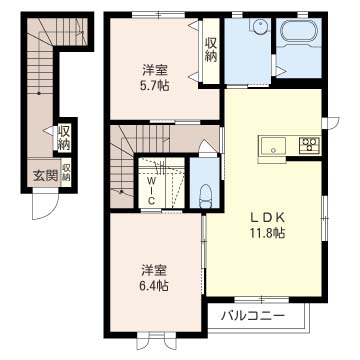 洋室 6.4帖 洋室5.7帖 |